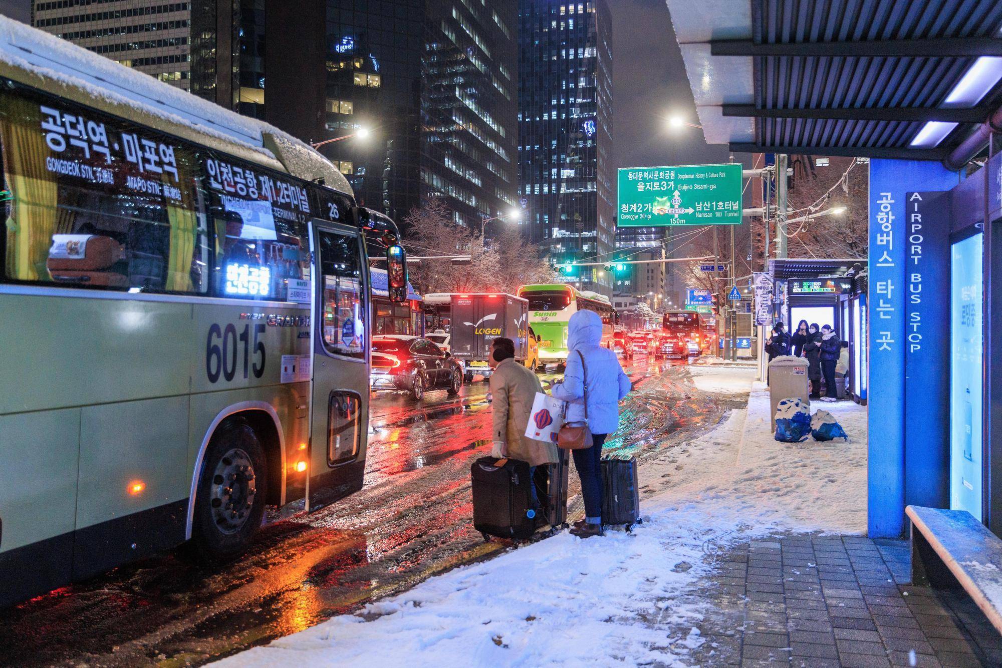 12月4日,在韩国首尔,人们在雪中候车。新华社发(朴晋泽摄)患者个人信息泄露事件也引发担忧。一些泄露事件由内部员工所为,他们私自下载客户资料并泄露给医药公司等机构。2023年7月,韩国个人信息保护委员会发现17家医院共泄露了大约18万名患者的资料。还有一些事件是黑客所为。2021年,首尔一家知名整形诊所的网络遭黑客入侵,黑客盗取了顾客整形前后对比照片和医疗记录,直接联系顾客本人进行勒索。