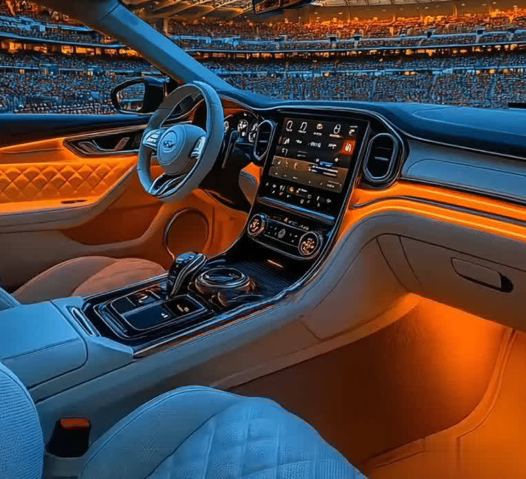 而内饰的改变就比较大了,不同于经典版也不同于现款,新车取消了大尺寸的串联屏,而改用两只独立的液晶屏,感觉上科技感降低,但其实恰恰相反,毕竟这样的布局更符合小伙伴们对于福特的认知,很多时候科技感并不适合所有车型,而这款蒙迪欧就是如此。至于细节上,新车更注重豪华感,包括车门内衬的大量打格状的元素,以及超奢华的氛围灯等等。