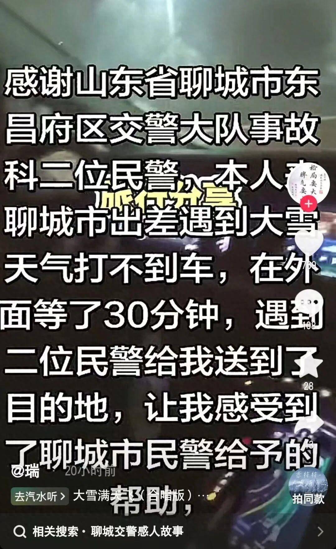 风雪虽寒,人心却暖。聊城公安民辅警用实际的行动在严寒的冬夜为群众撑起了一把“暖心伞”,也让这位外地游客真切感受到了这座城市传递的温度与善意,为他们点赞。