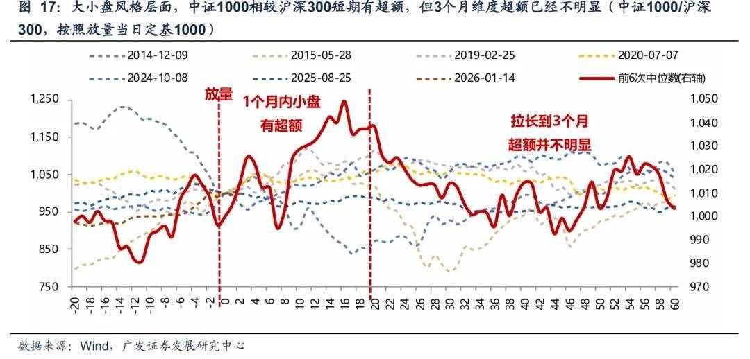 三、A股6次“放量成交”前后,大小盘有何规律?