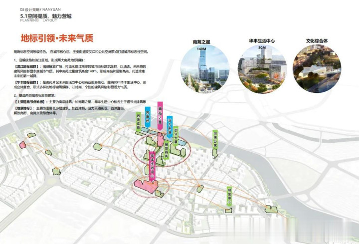 这个超高层,在下面的初步规划图中,她的名字叫南苑之星,高度明确为140米。