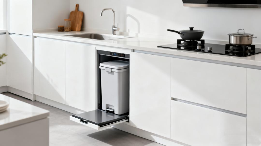 👉现实是:将湿垃圾源头密闭在黑暗、不通风的橱柜内,简直是为自己定制了一个细菌培养皿。一旦有汤汁泄漏,清洁难度从洗垃圾桶升级为擦洗柜体,不仅腐蚀柜体木板,还会滋生霉菌。